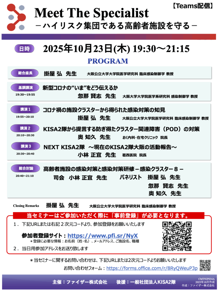 新型コロナのアウトブレイクの経験を経て我々が得た知見を集約し、掛屋先生、忽那先生をお迎えして、新たな概念とともにエキスパートレクチャーと本音のディスカッションを行います。
